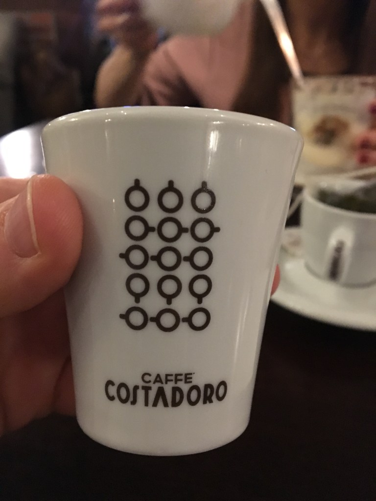 Była naprawdę bardzo dobra. Rzadko kiedy samo espresso tak smakuje. Zapisaliśmy sobie nazwę tej kawy, żeby ją zamówić i spróbować w domu. Jej nazwa to Costadoro, pochodzi z Włoch.