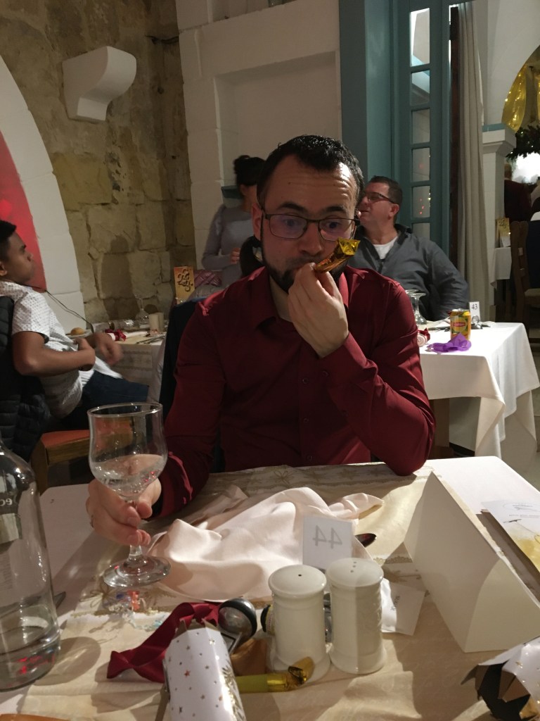 Ojj było syto! I to pod każdym względem, zarówno jedzeniowym, jak i kulturowym. Ale zacznę od początku :). Na Gozo dotarliśmy dzień przed sylwestrem. Początkowo nie mieliśmy sprecyzowanych planów, co chcemy robić. Plan był taki, że pierwszego dnia zrobimy rozeznanie po okolicy, popytamy miejscowych ludzi, co dzieje się ciekawego i na coś się zdecydujemy. Jak zaplanowaliśmy, tak zrobiliśmy. Od sympatycznej Pani ze sklepu spożywczego dowiedzieliśmy się o plenerowym sylwestrze w Victorii – stolicy Gozo. Zapewniała nas, że będzie tam pięknie. To miejsce polecała nam też blogerka Polka na Malcie. I tak zamierzaliśmy właśnie zrobić. Natomiast ze względu na to, że Sebastiana po podróży coś drapało w gardle, a wieczory były tam chłodne, zaczęliśmy rozważać sylwestra z uroczystą kolacją i muzyką na żywo w hotelowej restauracji, na którego ostatecznie zdecydowaliśmy się pół godziny przed rozpoczęciem imprezy.