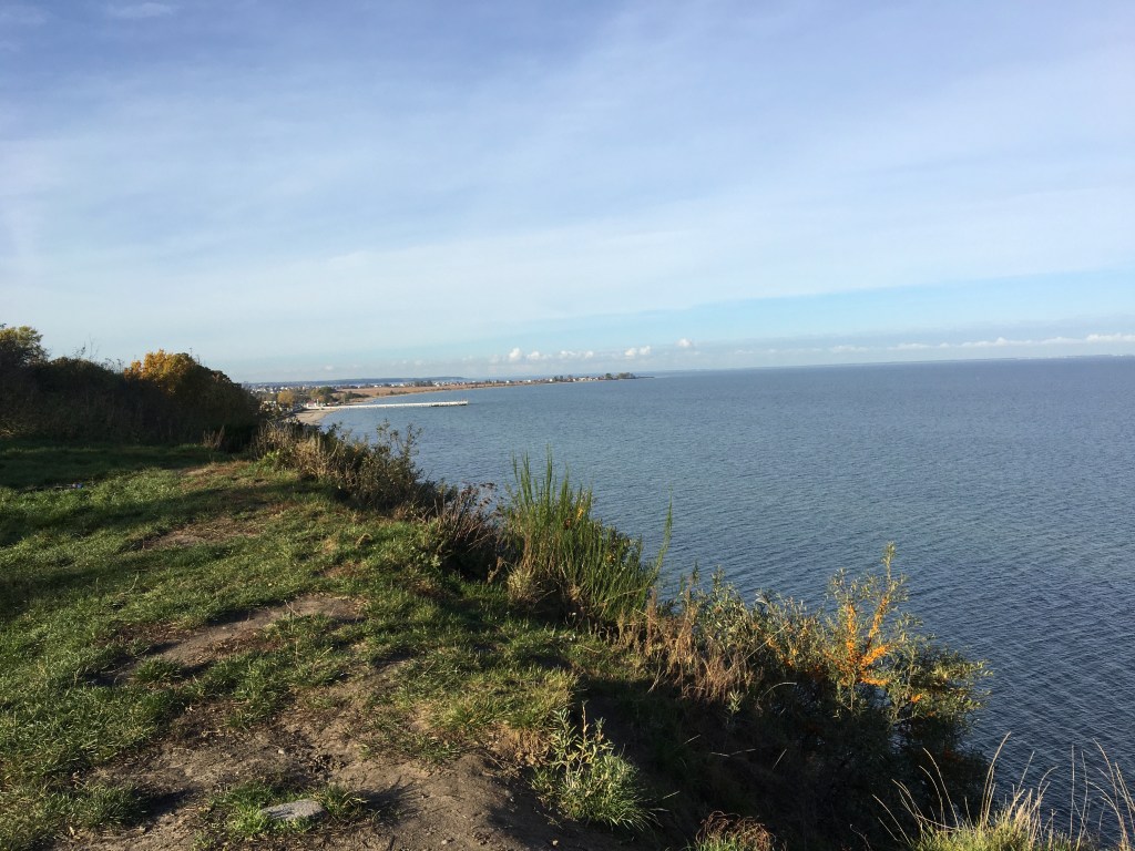 Następnie zeszliśmy pobliskim zejściem do morza na plażę i ruszyliśmy w kierunku Rewy. Kolejny odcinek miał z kolei zupełnie inną scenerię. Tutaj zamiast wydm z boku podziwialiśmy Rezerwat przyrody Mechelińskie Łąki. Również było to coś zupełnie innego, czego byśmy się spodziewali. Zazwyczaj nad morzem z jednej strony jesteśmy po prostu odgrodzeni mniejszymi lub większymi wydmami, które czasem bywają zalesione, a czasem piaszczyste. W każdym razie najczęściej jesteśmy oddzieleni. A tu po prostu mijaliśmy wielkie połacie zielonej, płaskiej ziemi. Mając z jednej strony otwarte morze, z drugiej mieliśmy otwartą przestrzeń. Niesamowite uczucie. Już pod koniec było nam bardzo trudno iść, ponieważ słońce już zaszło i było po prostu nieprzyjemnie zimno. Natomiast nie poddaliśmy się i doszliśmy do końca. Cypel w Rewie wynagrodził nam nasze wysiłki i bardzo nas zachwycił widokiem.