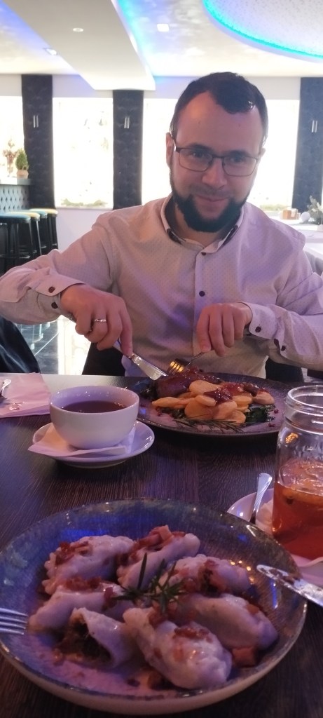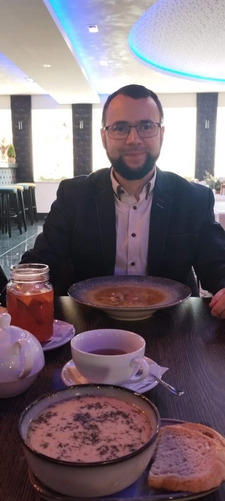 Ponadto oprócz restauracji jest tam cały kompleks hotelowy oraz miejsce do integracji i konferencji. Jedzenie było wyśmienite. Lokalna zupa – świętokrzyska zalewajka była przepyszna i bardzo przypominało mi zalewajkę, którą gotowało się u mnie w domu. Sebastian nie zna tej zupy, w jego stronach się tego nie jadało.