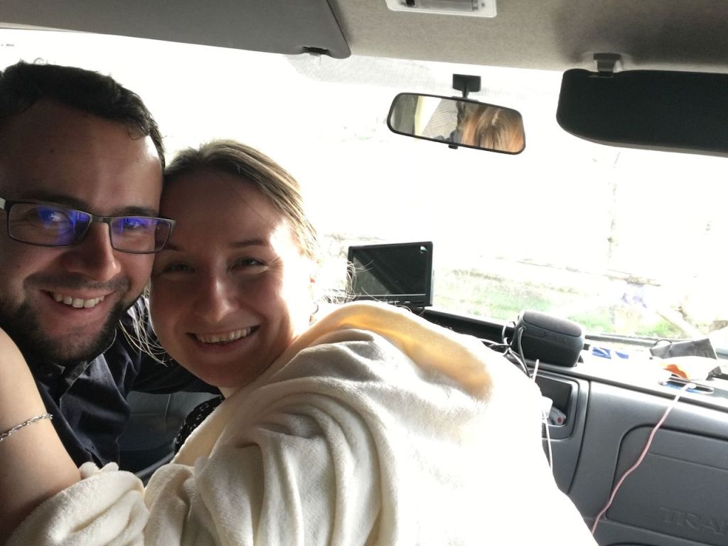 W każdym razie od tamtej pory już oboje pałaliśmy miłością do kampera i szukaliśmy sposobności, by w ten sposób podróżować. Wypożyczanie nie wchodziło w ogóle w grę, ponieważ nie było opłacalne z uwagi na wysoką cenę za wynajem. Poza tym czuliśmy bardzo mocno, że chcielibyśmy mieć własny dom podróży, w którym będzie cząstka nas. Planując ślub oraz wspólne życie, po przyjętych przeze mnie oświadczynach, wymyśliliśmy, że chcemy pojechać w podróż poślubną do Toskanii już naszym własnym kamperem. A więc ochoczo rozpoczęliśmy poszukiwania. Na początku założyliśmy budżet do 50 000 zł. Natomiast szybko się przekonaliśmy, że jeśli chcemy kampera, przy którym nie będziemy musieli na wstępie nic większego robić, to musimy podwoić budżet. Natomiast i tak nie było łatwo! Dobre samochody znikały jak świeże bułeczki. Czasem dzwoniliśmy, żeby się umówić następnego dnia na oglądanie, a w drodze okazywało się, że samochód jest już sprzedany. Na szczęście w marcu udało nam się trafić na kampera, który wydawał się być dla nas stworzony. Miał wszystko to, co chcieliśmy. Oddzielona sypialnia na końcu oraz osobna łazienka i toaleta to były nasze priorytety. Do tego jak na kampery było tam naprawdę dużo przestrzeni, przy jednoczesnym optymalnym rozmiarze auta. Ciekawe było też to, że gdyby nie nasz niski wzrost, moglibyśmy mieć problem na długość, żeby się zmieścić na łóżku. Cóż, wszystko wskazywało na to, że to kamper dla nas! Po obgadaniu wszystkich technicznych spraw, 8 marca w dzień kobiet zdecydowaliśmy się go kupić! Było to półtora miesiąca przed naszym ślubem. Umówiliśmy się ze sprzedawcą, że będzie tak działał ( obiecał zrobić w nim jeszcze parę rzeczy oraz dopełnić formalności potrzebnych do sprzedaży), żebyśmy mogli go odebrać przed ślubem już całkiem gotowego do jazdy. Było to istne szaleństwo! Kolejna ciekawostka jest taka, że gość znał się z ekipą Busem przez świat, którą wtedy śledziliśmy. Jest to małżeństwo podróżujące po świecie starym, kolorowym busem, które dzieli się swoimi przygodami i doświadczeniami z podróży w mediach społecznościowych. Obecnie jeżdżą z małym dzieckiem, które od samego początku uczy się czerpać z życia jak najwięcej, niesamowicie się przy tym rozwijając. Jaki to świat jest mały! Tak właśnie pozostaliśmy szczęśliwymi posiadaczami kampera! A od dnia ślubu, staliśmy się spełniającymi swoje marzenia podróżnikami!